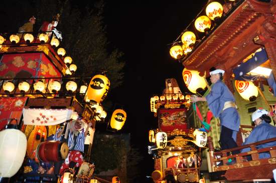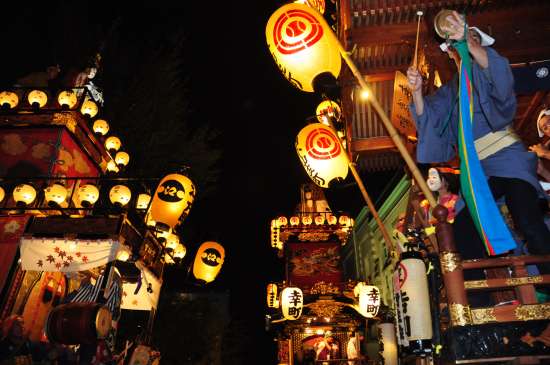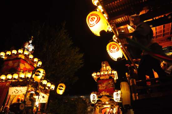 ◆日が暮れて始め、町々の山車の灯りが輝きます!