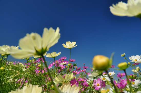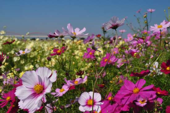 秋晴れの空のもと、満開のコスモスを楽しんできました♪
