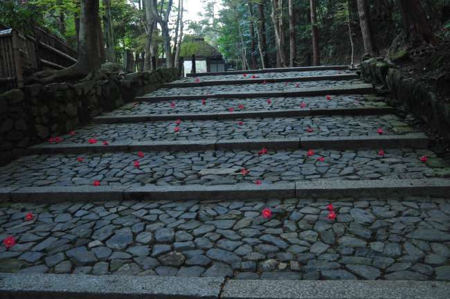参道は朝の掃除をされていた最中でした。掃除の際に椿の落花を残して掃除をされているので、参道は椿で彩られてとっても趣があります。寄り道してよかったと大満足です