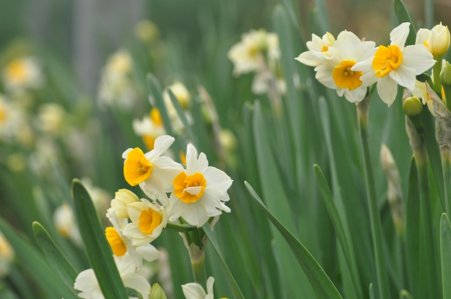 事前に水仙の開花状況や天気予報を調べて、この日がベストと思って行ったのですが、なんだか空はパッとしない曇り空…
