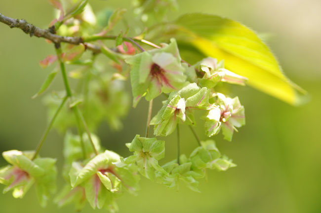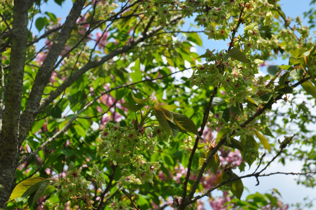 ◆途中の桜園では珍しい緑色の桜"御衣黄桜"を見ることができました
