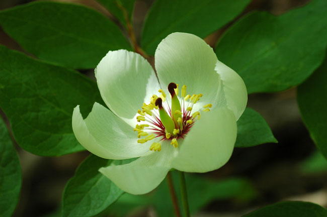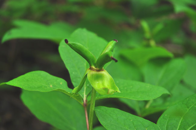 ■昨年は満開だった山芍薬(左)も今年は種子ができていました(右)