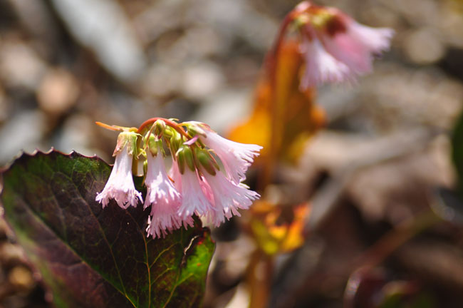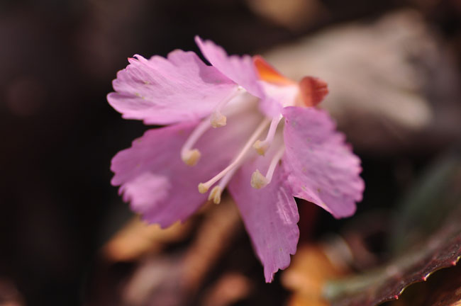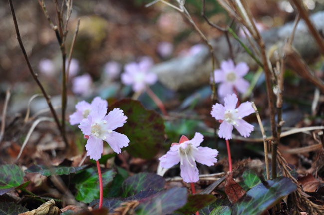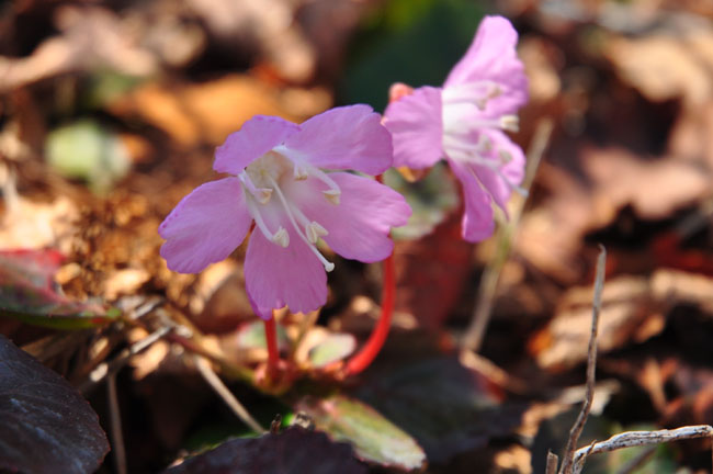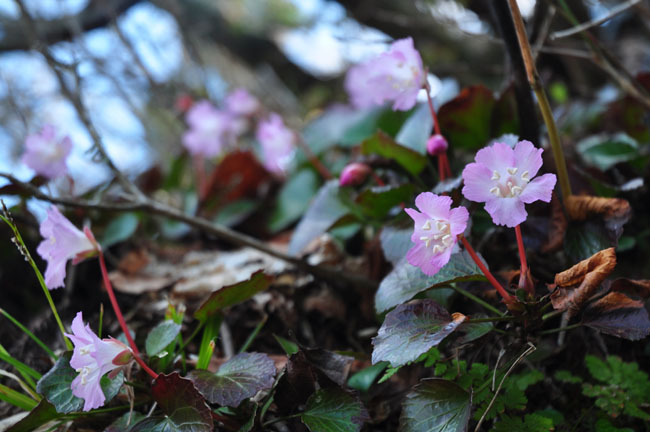 をするために、登山道から少し離れた場所で休憩していると、イワウチワを発見!大感激です