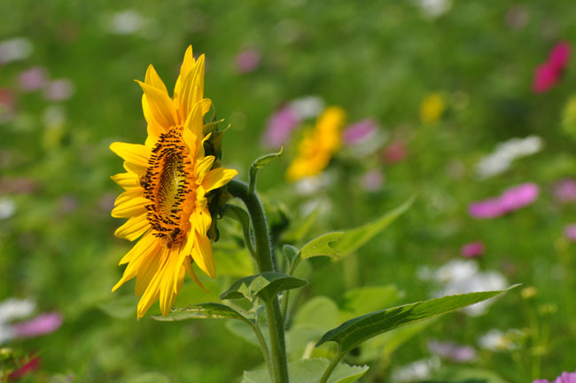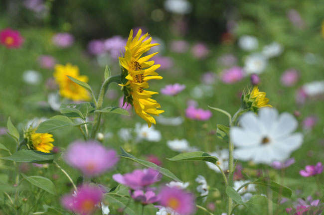 』なるものが咲いていて、思いがけずコスモスとヒマワリのコラボレーション