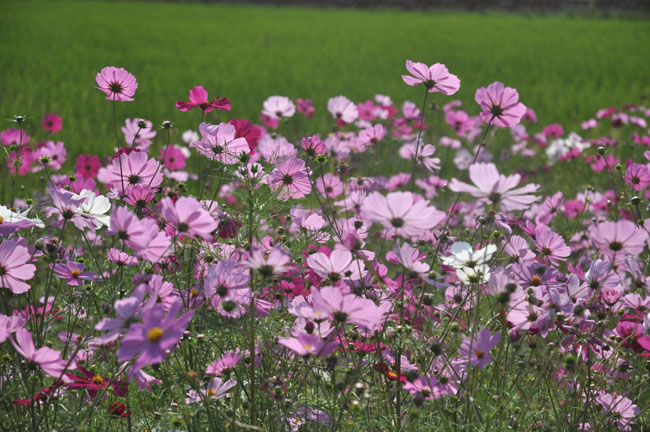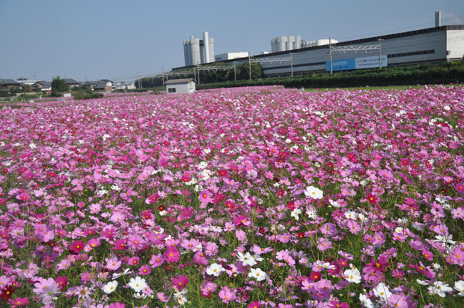近くで、見事なコスモス畑を発見して、寄り道。こんなのが出来るのも移動手段が自転車