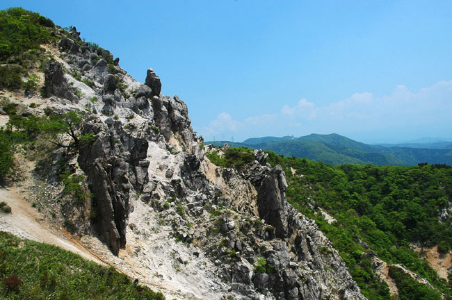 登山を開始して2時間。汗もジワジワと出始めた頃に、山の斜面を見ると白い花