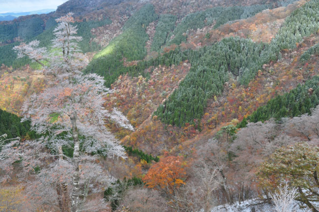を楽しんでいると、別のカメラマンの方から『護摩壇山のほうは今雪